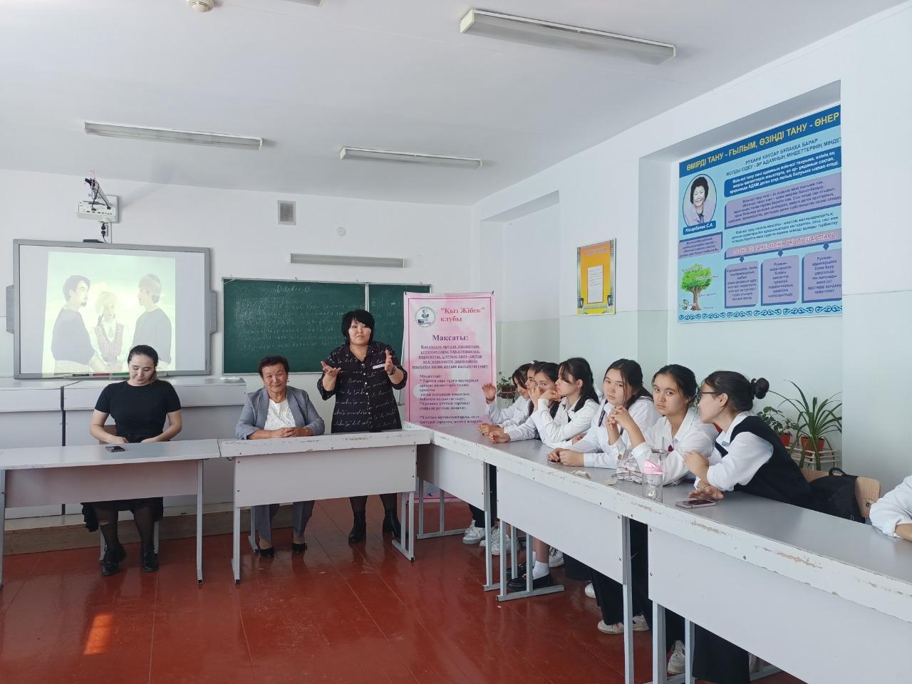 «Отбасы – орта мектеп» жобасы аясында «Ана мектебі», "Қыз бала- болашақ ана", тақырыптарында 8-9-сыныптардың қыз балаларымен сырласу кешін өткізді.