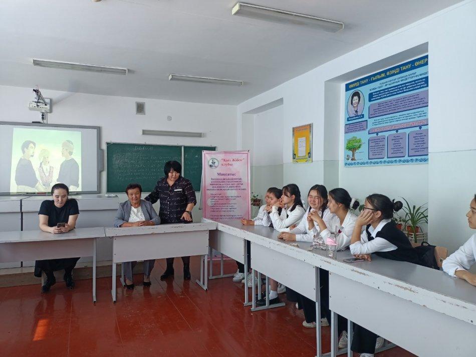 «Отбасы – орта мектеп» жобасы аясында «Ана мектебі», "Қыз бала- болашақ ана", тақырыптарында 8-9-сыныптардың қыз балаларымен сырласу кешін өткізді. Аталған іс-шараға қатысқан ардақты ардагер ұстазымыз Айдарова Салима Тураровна — қазақ отбасындағы қыз бала тәрбиесінде ұл бала тәрбиесіне қарағанда біраз ерекшеліктердің бар екенін айтып. Себебін түсіндірді. Бүгін отбасында еркелеп өсіп отырған қыздар, күні ертең бойжетіп өскен соң, өзге шаңырақтың түтінін түтетіп, ошағының отын жағатын әйел, ана болатынын айтсақ та жеткілікті. Халқымыз ананың рөлін өте жоғары бағалаған. Ана – барлық өмірдің бастауы.«Қыз» — қасиетті сөз. Қасиетті болатыны бүкіл адамзат қыздан тарайды: қыз келін болады, келін анаға айналады, ал ана әже деген зор дәрежеге жетеді. Осы үшеуі арқылы ұрпақ өсіріп, ұлт қатарын көбейтеді.Қазақ қауымында қыз баланың орны айрықша болған. Барған жерде бағының ашылуына үйде отырып қамданатын болған. Қыз баланы құрметтеу, оның еркелеткен деп қыз балаларға ата дәстүрін жалғастыруын тамаша жеткізе білді.