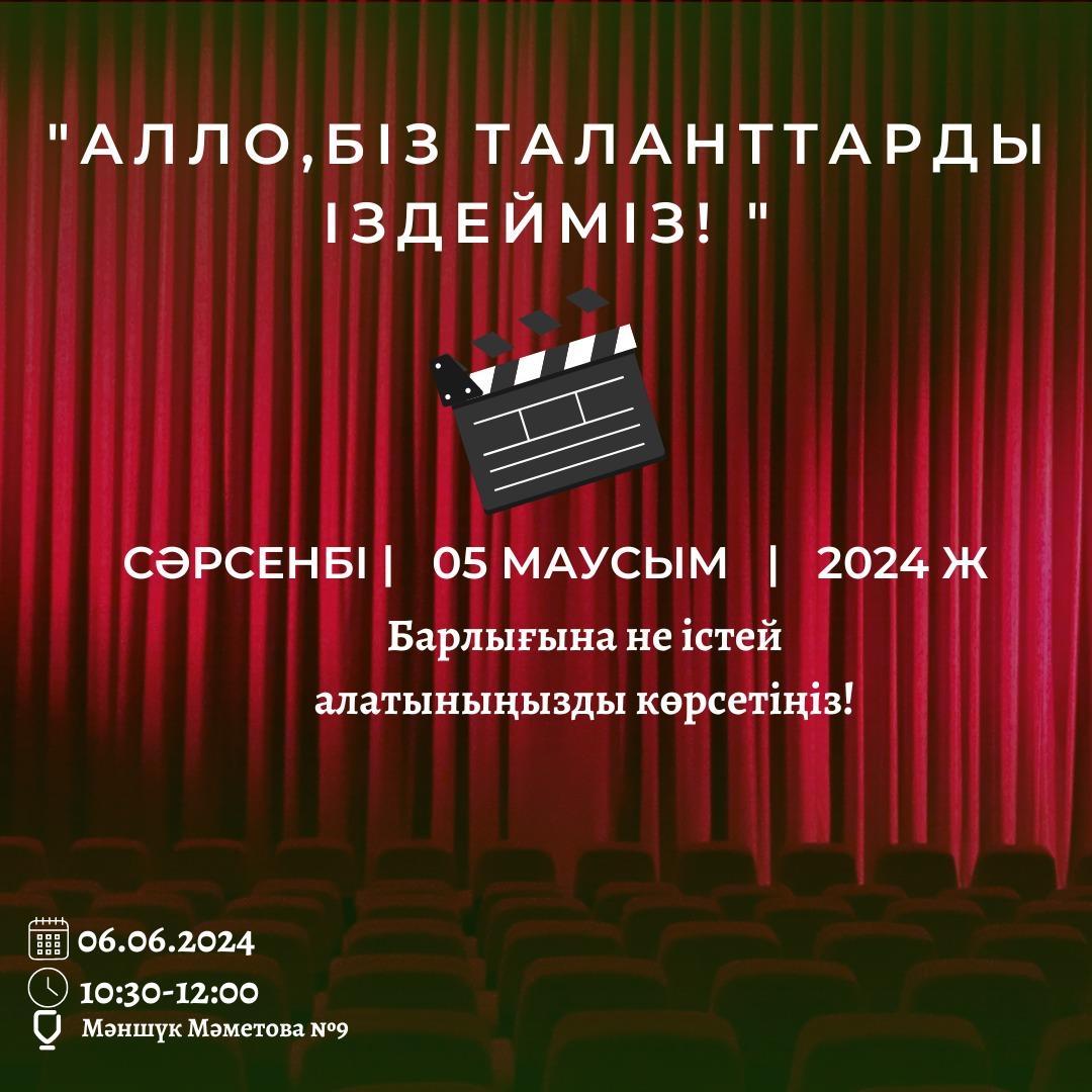 05 маусым 2024 0 1 2 3 4 5 "Алло, біз таланттарды іздейміз! attachment=217]whatsapp-video-2024-06-05-at-17_33_08.mp4 [13,69 Mb] (cкачиваний: 1) Жазғы бейінді лагерінің жоспарына сай "Алло,біз таланттарды іздейміз! " тақырыбында шығармашылық байқау өтті ]