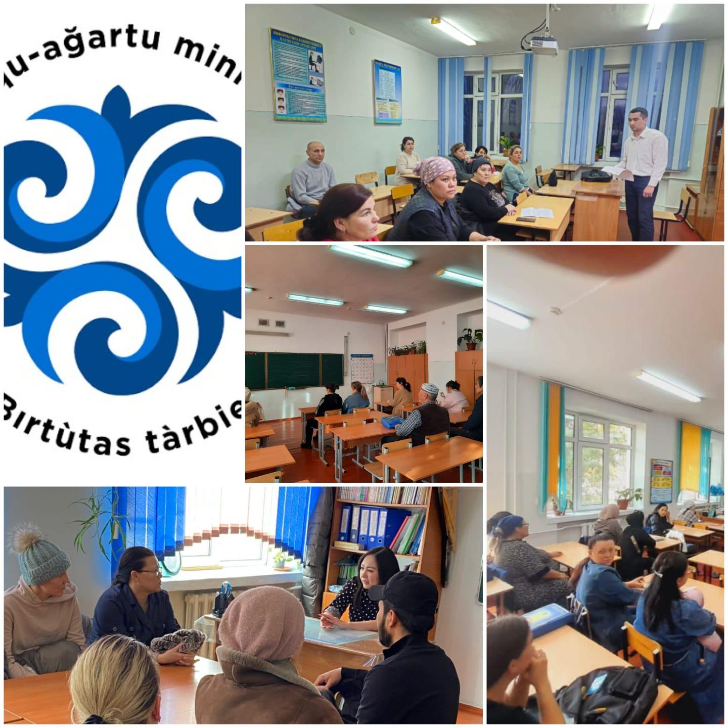 Мақсаты: Балаларды оқыту және тәрбиелеу мәселесі бойынша мектептің ата- аналармен қарым - қатынасын күшейту, берекелі отбасы мәдениетін дамыту. Ата- аналармен сабақтар үш буын аралығында төмендегі тақырыптар бойынша ұйымдастырылды.