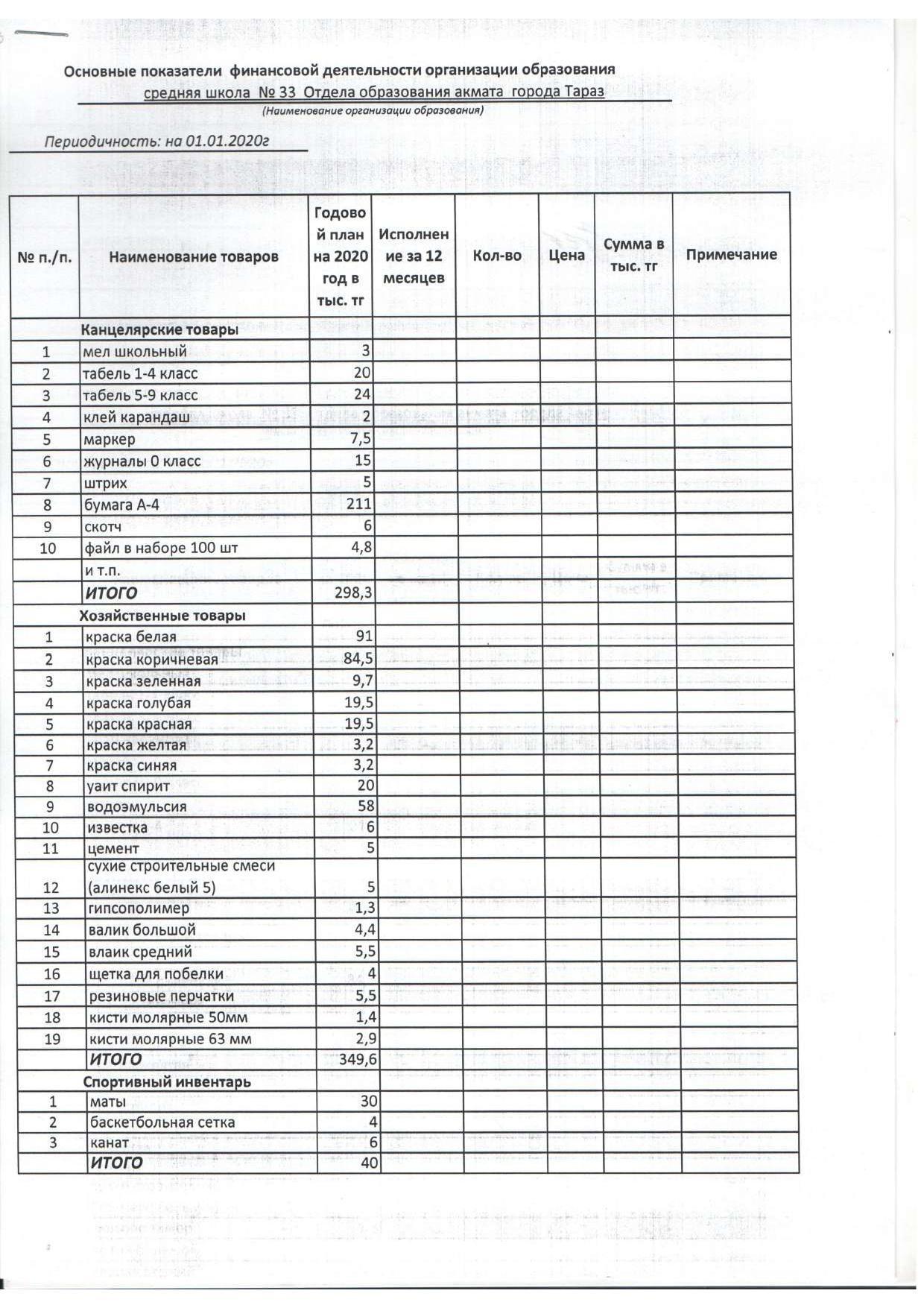17 наурыз 2020 0 1 2 3 4 5 01.01.2020 ж. М.Әуезов атындағы №33 орта мектебінің қаржылық көрсеткіштеріне қосымша