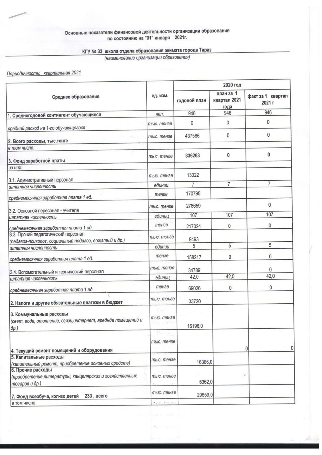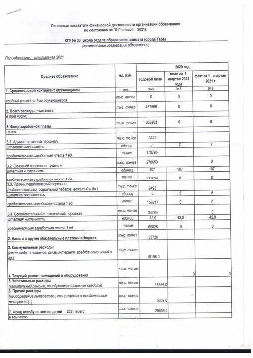 Қаржылық қызметтің негізгі көрсеткіштері мектеп 2021 » СШ №33