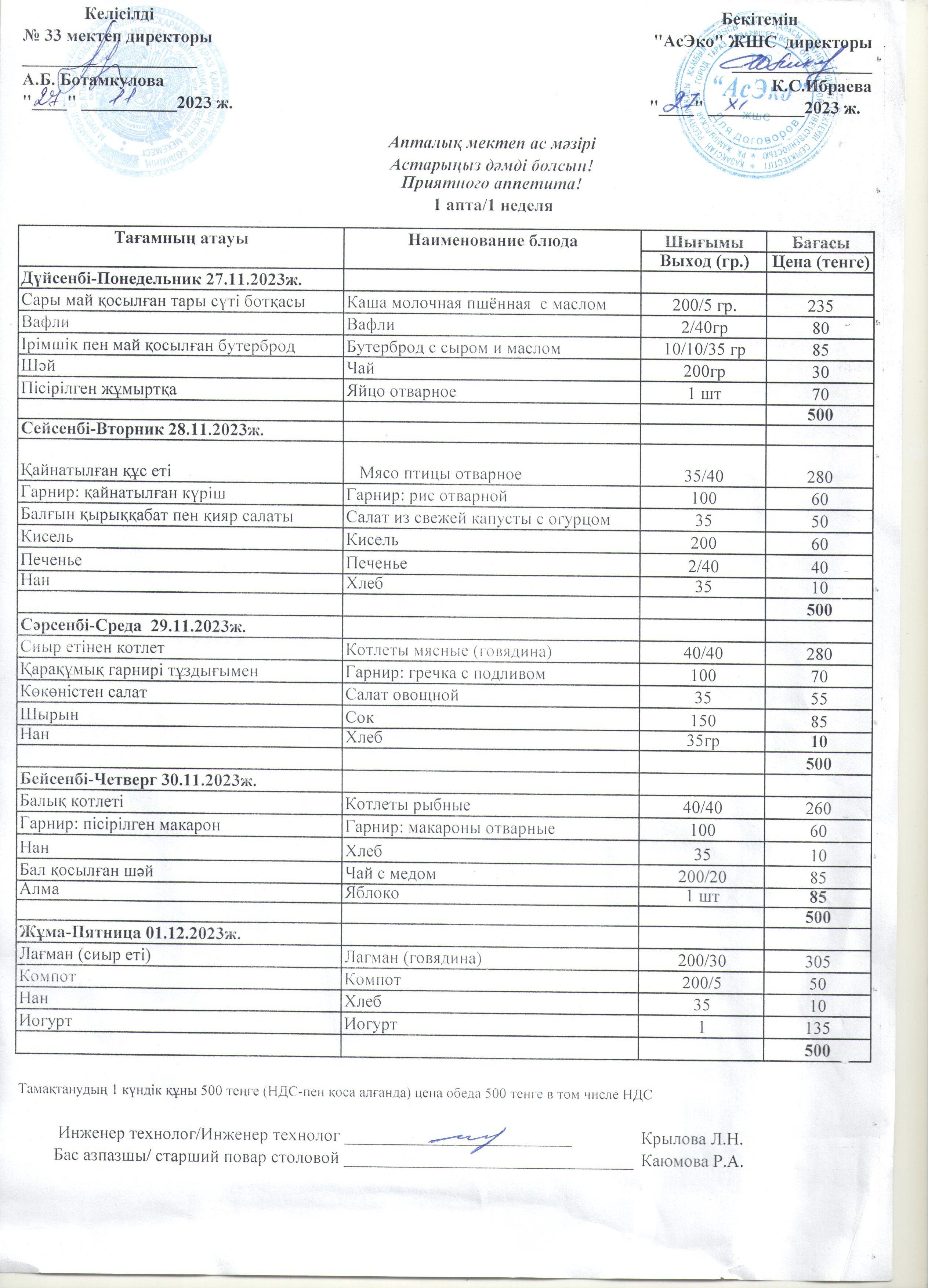 АПТАЛЫҚ АС МӘЗІРІ » СШ №33