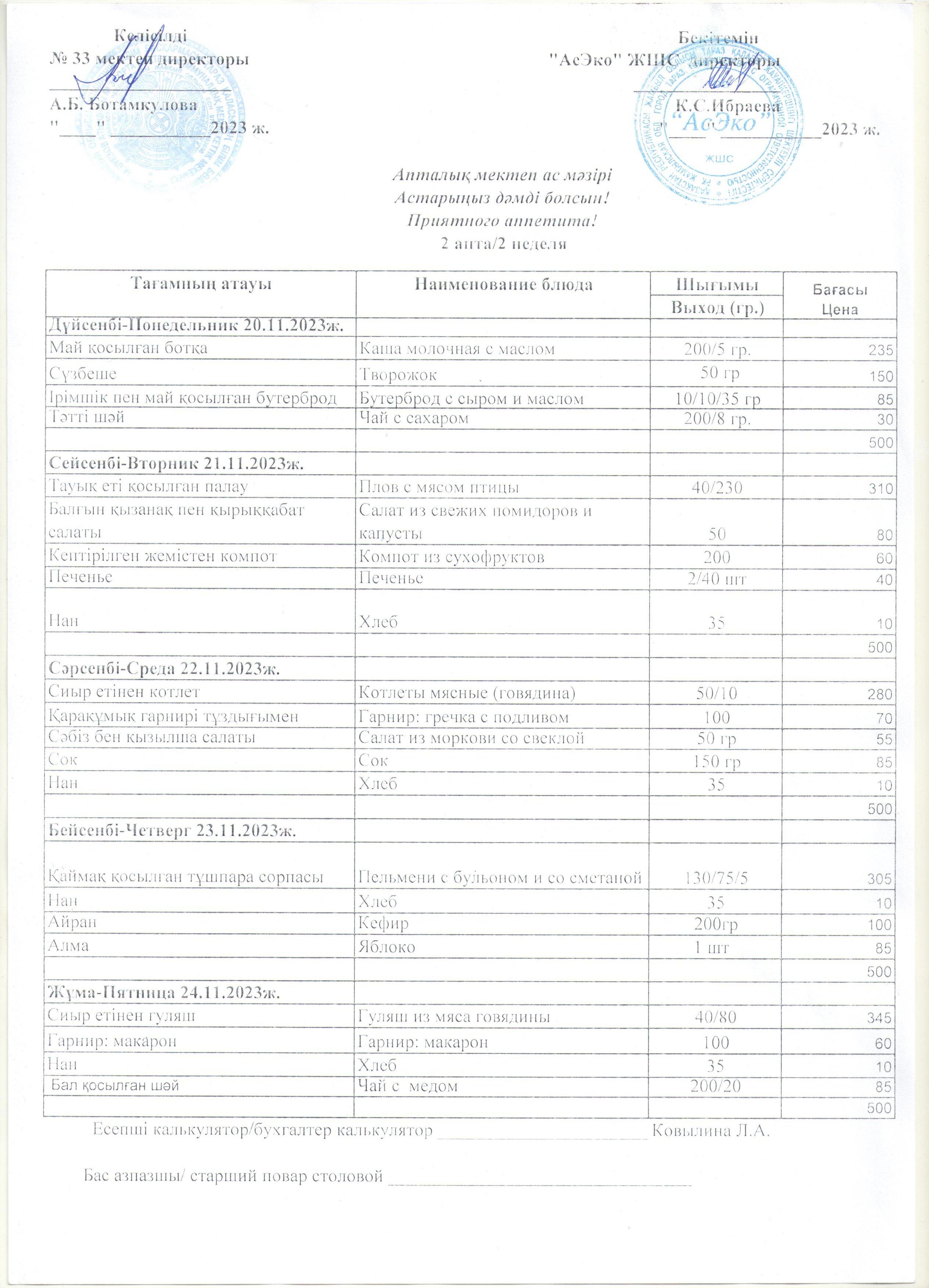 АПТАЛЫҚ АС МӘЗІРІ » СШ №33