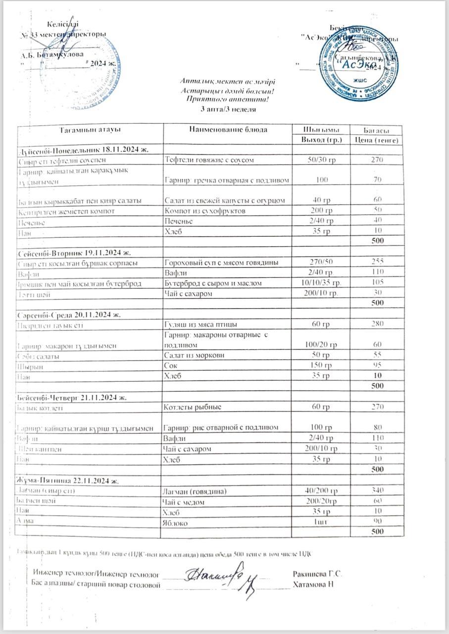 Ас мәзірі 18.11.2024ж » СШ №33