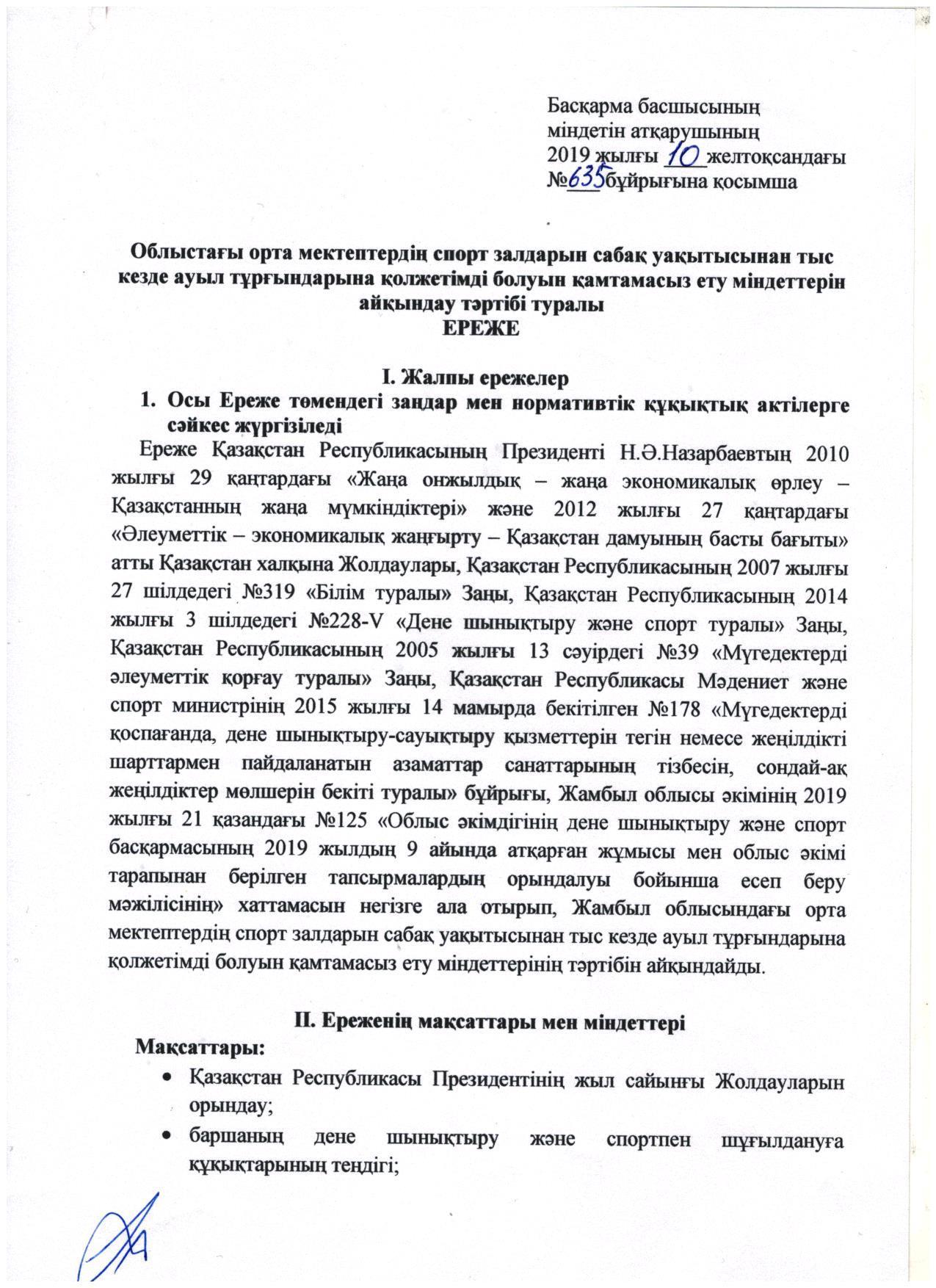 Спорт нысанының тұрғындарға қолжетілімділігі бойынша » СШ №33