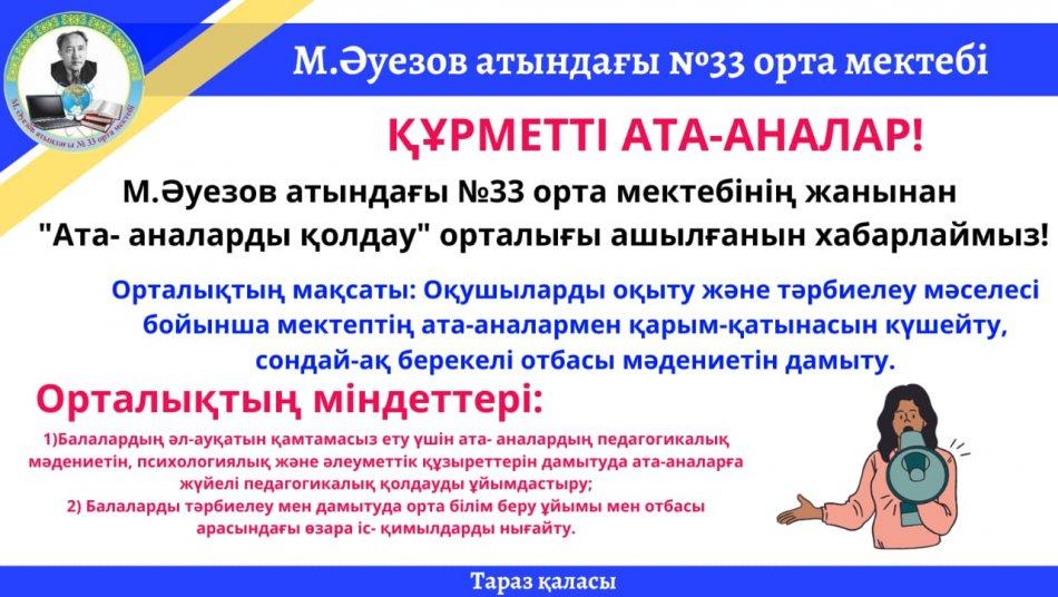 Ата-аналарды педагогикалық қолдау орталығы өз жұмысын жүргізуді бастап отыр.