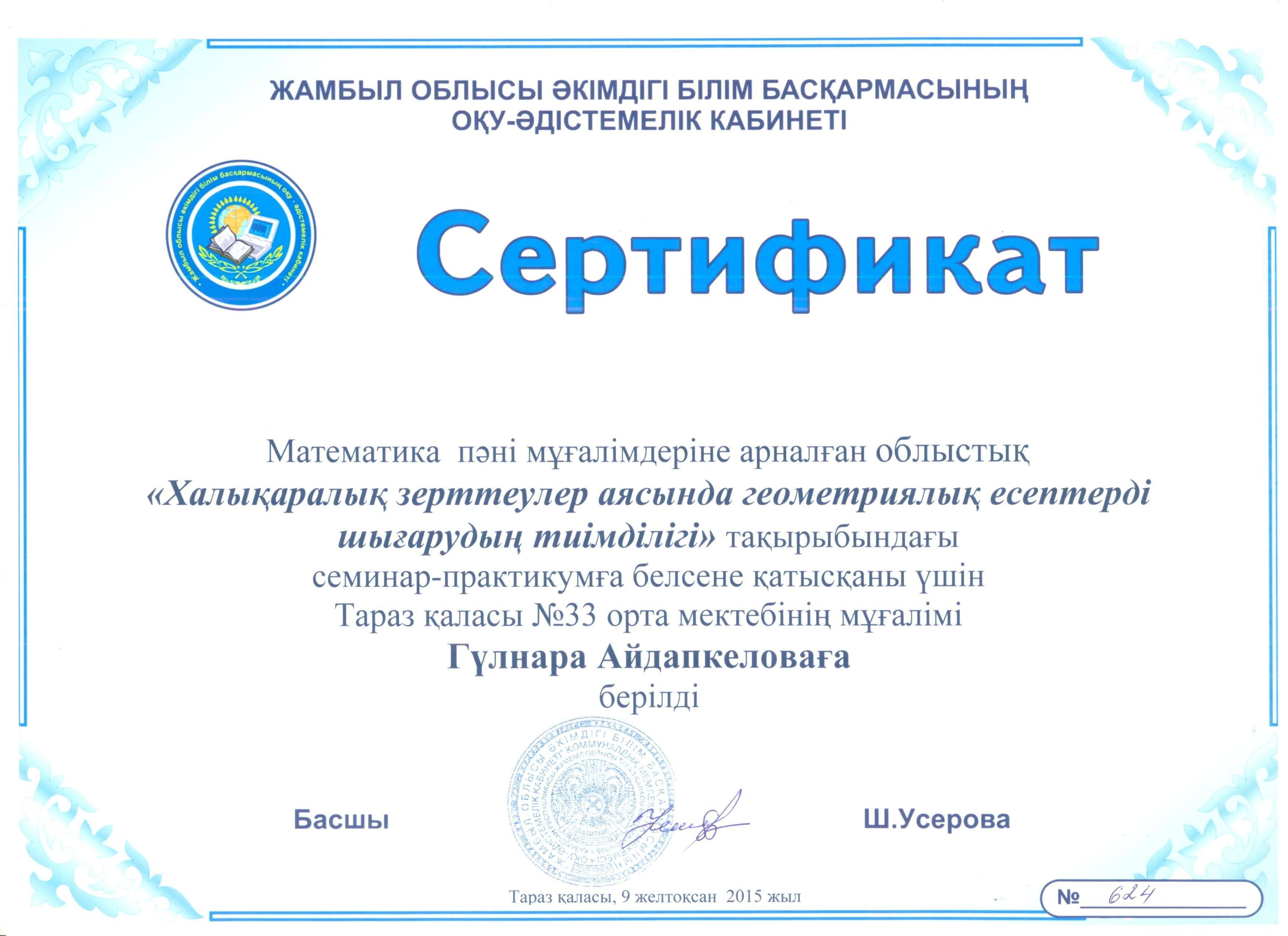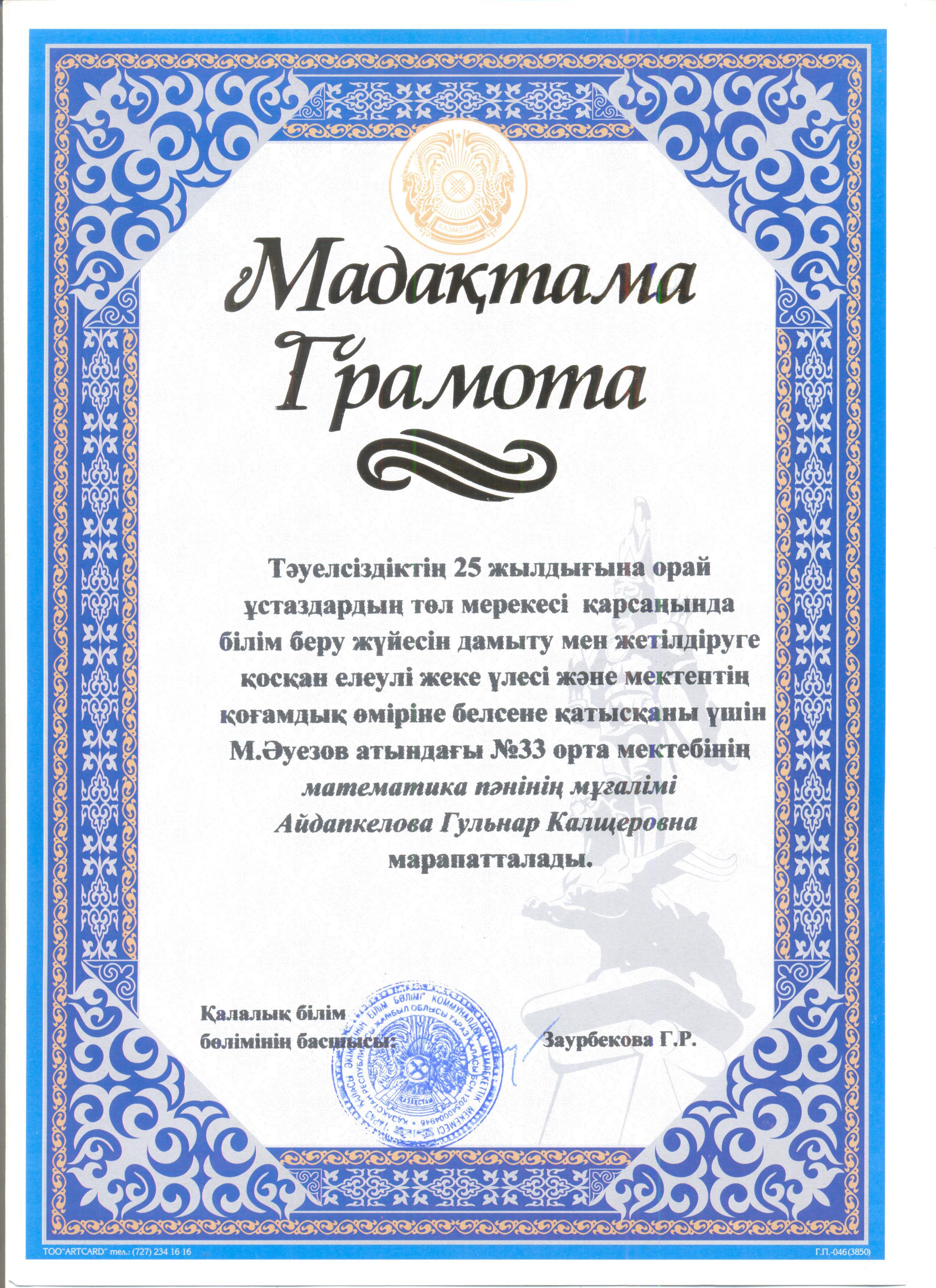 Айдапкелова Г.К математика пәнінің мұғалімінің