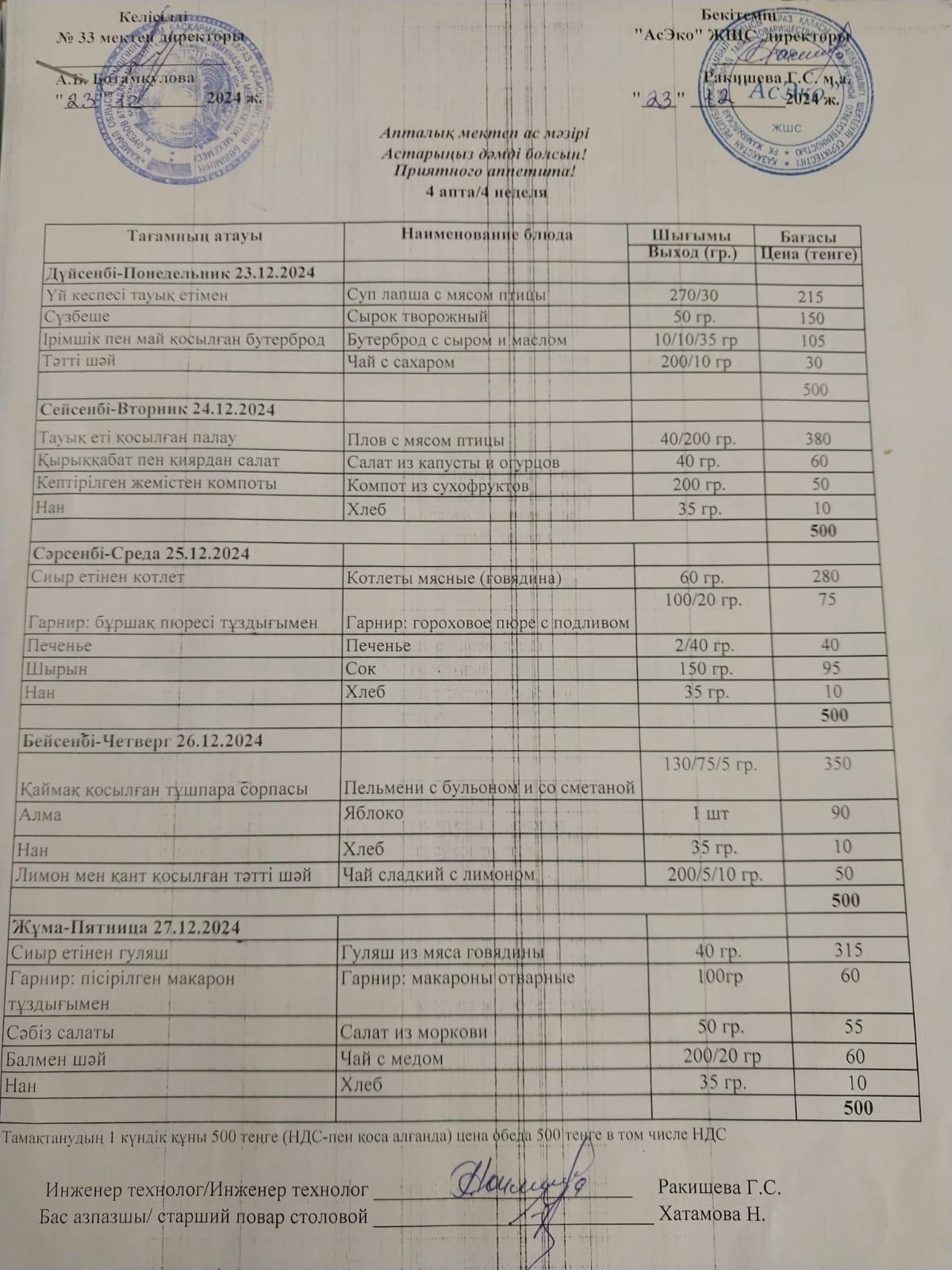Апталық ас мәзірі 23.12.-27.12.2024ж » СШ №33