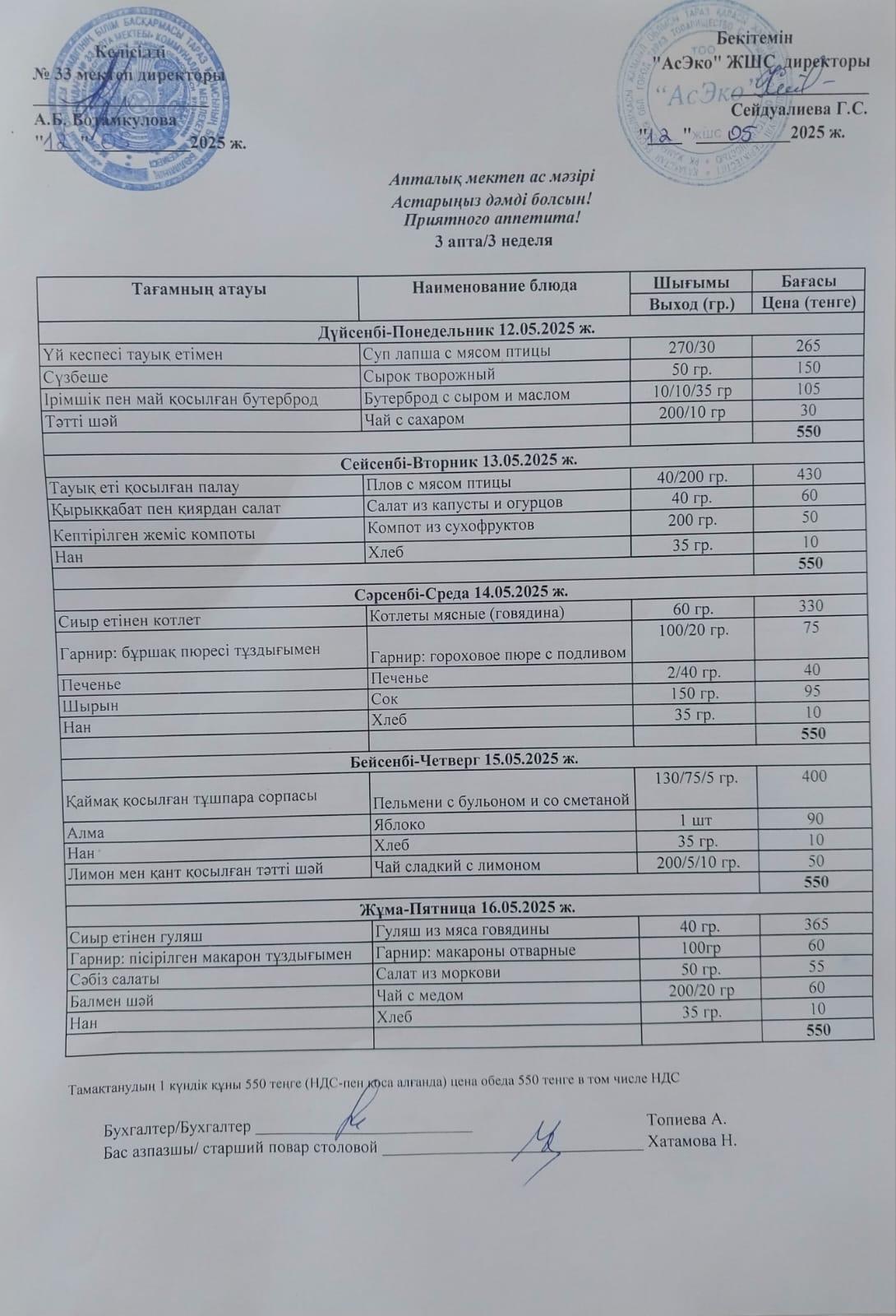 Апталық ас мәзірі 12.05-16.05.2025ж » СШ №33