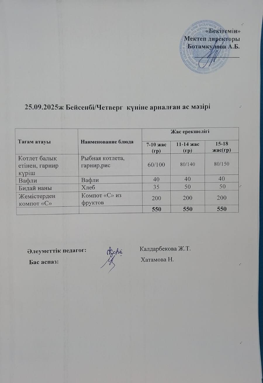 Күндік ас мәзірі 25.09.25 » СШ №33
