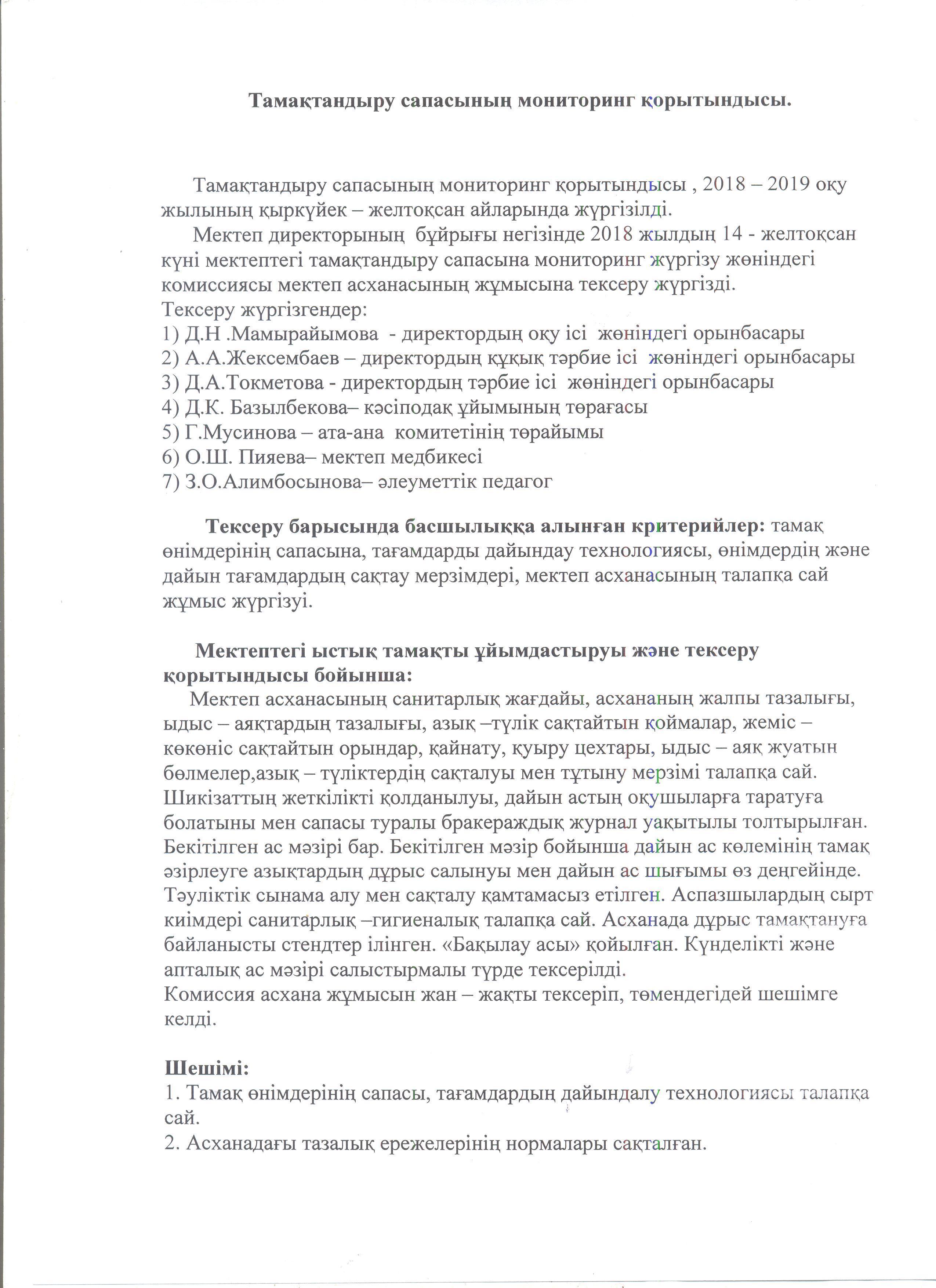Питание сапасының мониторинг қорытындысы » СШ №33